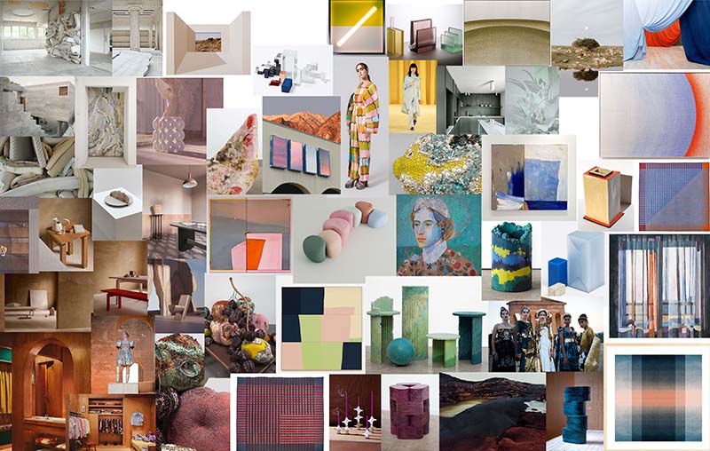 This year’s palettes take their inspiration from global masterpieces. “We looked at the major art shows around the world and what the artists were doing. Some of the colors are reflective of that, like the orange-red on top of a rich, Navy blue. We’re seeing a lot of the blues, from greener-based tints to royal and dusty shades.”