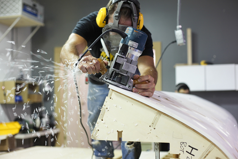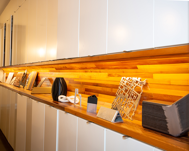 “The challenges are not only aesthetic but functional,” explained Eventscape Project Developer Herman Mejia. “We’re building mockups of the mechanics. The designer wanted solid-wood louvers, but solid wood would not behave properly. So, we developed an interior core extrusion that’s cladded with wood. The look is there and the performance as well.”