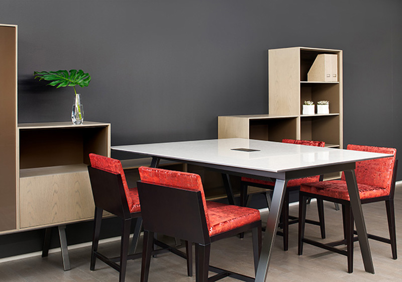 With the clock ticking and the wine flowing, it was difficult to peel away from this floor and make our way down to the 11th floor, home of Keilhauer, Versteel, Groupe Lacasse and many more showrooms. Stepping into the timeless Keilhauer space, we are greeted by Carol Symchik, always the consummate host. She showed us around the new lounge pieces which are sure to be a hit with young designers. Across the hall at Versteel, I really liked their new Thea table with a very creative USB power option, sure to be a hit.