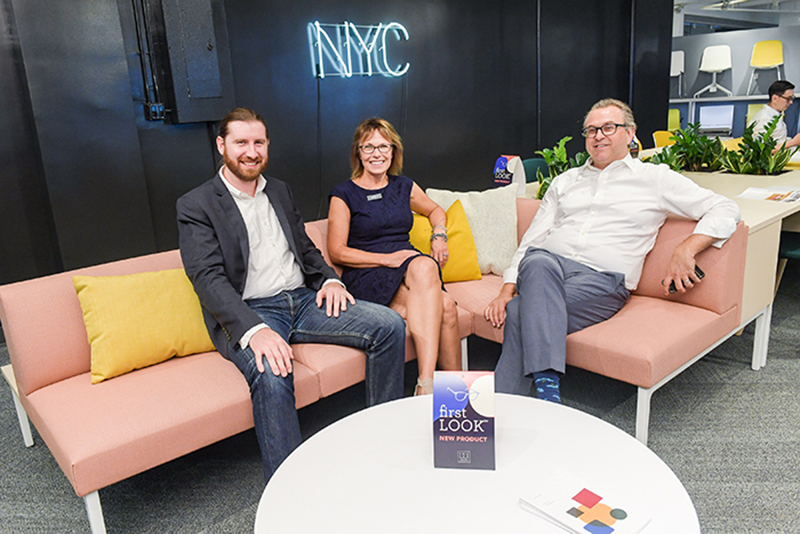 Sneaking down to the 13th floor revealed three manufacturers that made their First Look debut this year: the custom carpet company Crosby Street Studios, Traditional woodworking master Thos. Moser, and New York native Desiron. My first stop on the floor, however, was KI. The sound of steel drums drew me into KI’s showroom, and the extensive wine tasting had me sticking around. It was great to catch up with old friends Curtis Winkler, Debbie Breunig and local rep Christina Gigstead. KI’s new product offerings were placed all over the showroom, the good cheer and great design were extremely popular with First Look visitors.