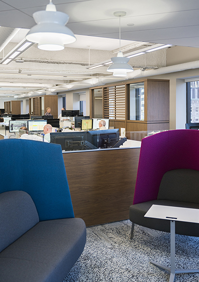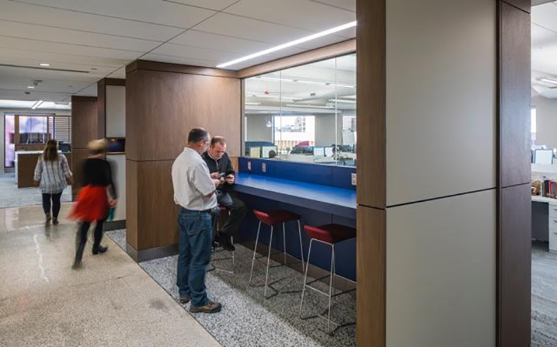 “They’re a very focused group, and very deadline-driven,” noted Ms. Taylor. “Every individual work area is assigned, but the private offices are set up to accommodate collaborative functions as well.
