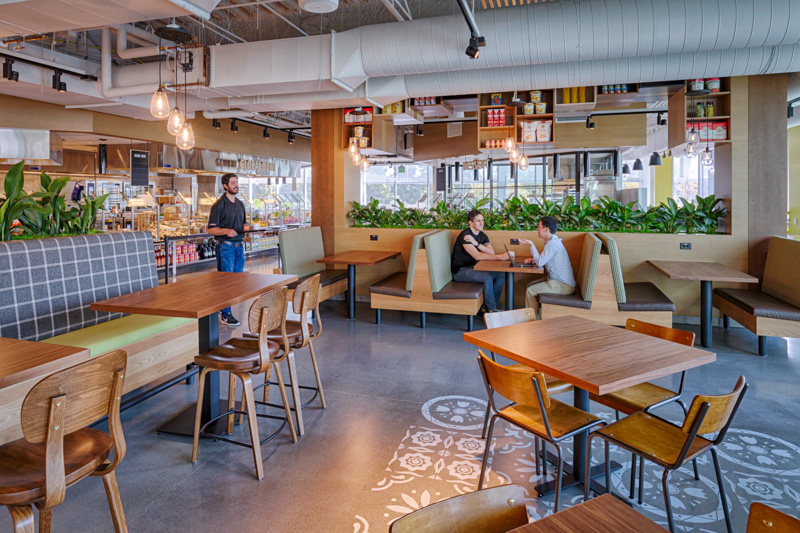We’re all trying to maximize our days while taking care of ourselves (and everyone else in our lives). Knowing we don’t have to spend extra time and thought on what to eat can make the workday easier. Grab and go options provide a way to take lunch outside, to a meeting, or just get back to your desk quicker to finish up that deadline. Giving people agency and choice to do their own thing — think coffee machines, refrigerators, microwaves, and comfortable places to sit — also makes the office more welcoming and signals that it, too, is a space for living.