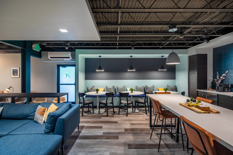 Since many employees are now used to working from home, it is essential to incorporate a sense of āhomeā in the office. This can be done by incorporating residential elements such as comfortable sofas and chairs, soft lighting features in shared spaces, and artwork displayed throughout the office. For instance, we combined our company colors and comfortable furniture with colored pillows to help employees feel more comfortable and cheerful. Employers may also consider green walls, natural gardens, plant displays fixed to interior walls, and indoor micro gardens. If your space does not have much lighting, incorporating greenery helps to add some nature and bring in the outdoors. Additionally, plants have numerous health benefits.