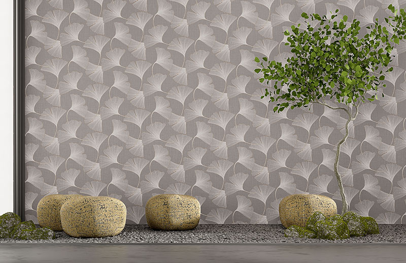 Kaali is another striking new feature-wall product with the Gingko leaf as the primary visual. It has a hospitality or even a healthcare feel given the psychological link between the Gingko leaf and health and longevity (fossils of Gingko leaves date to 270 million years ago).