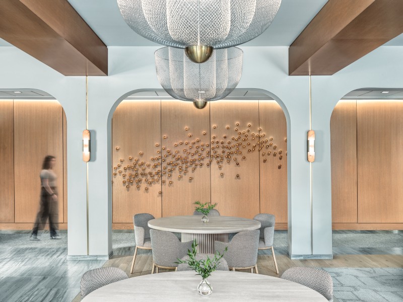 Touch: People interact very differently with surfaces. Some enjoy tactile input, while others do everything they can to avoid it. Smart design integrates soft, comforting textures with smooth, low-friction surfaces in areas where individuals need to spend extended periods of time, peppered with spaces that offer a deeper tactile experience when desired. That can be in the form of a highly tactile fabric in a specific seating area or a textured surface in social spaces that people can physically engage with.