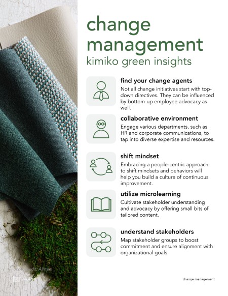 Change management consultant Amy Becker surprised us with a new fun fact: “Sustainability is an anomaly. It’s one of the few types of change that more often starts from the bottom up.” That makes your employees one of your most powerful tools for progress.