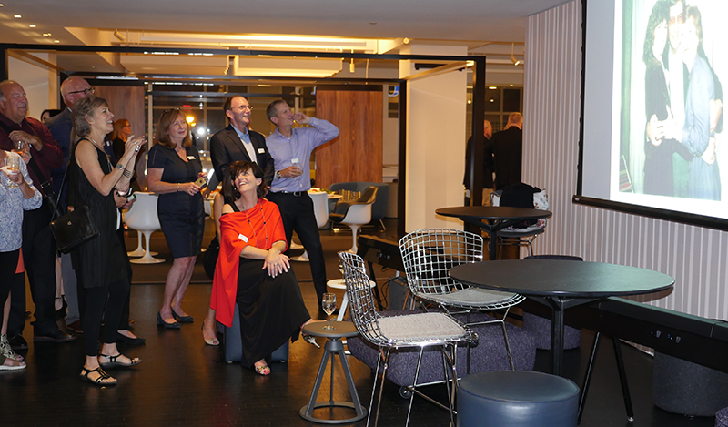 One of the biggest hits of the night was a slide show of old photos Janet had invited people to send in. It was running on several projectors around the showroom and crowds were gathered at each one laughing and pointing and reminiscing together.