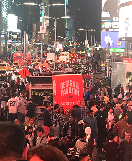 Located in Times Square, Design Pavilion, was a very publichub for NYCxDESIGN. In partnership with the Times Square Alliance, Design Pavilion aims to engage more than five million visitors in ideas about design. It consisted of five plazas in Times Square with daily programs featuring the work of the participating institutions, companies, architects, designers and artists. âWeâre passionate about the power of design and we want the world to know,â said Ilene Shaw, Founding Producer of Design Pavilion. âIn its 4th year, Design Pavilion is expanding the design industriesâ reach to mass audiences, including the public and business sectors.â Design Pavilion is an annual public design and cultural happening that is free and open to all.
