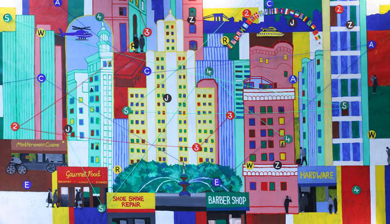 I was staying in the Financial District near Fulton Center, the newly renovated, high-tech transportation hub that connects to 11 subway lines and the World Trade Center. I was pleasantly surprised to find that even the MTA got in on the NYCxDESIGN action with âMTA Arts & Design, Fulton Flow,â a stop-motion animation created by Ezra Wube for the 52-channel digital network throughout Fulton Center. The cool video could be seen for two minutes at the top of each hour. It highlights Fulton Centerâs unique location with connections to pretty much everywhere.