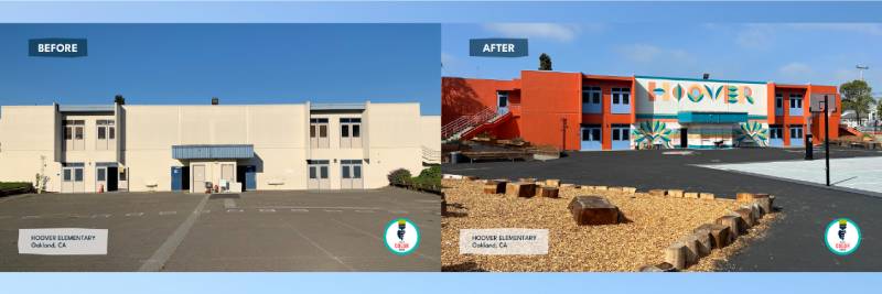 One powerful example is Hoover Elementary School, where a student mural sparked a ripple effect — a collaboration with Eat Learn Play and Kaboom which increased student enrollment and inspired neighbors to repaint their homes. “None of our 25 projects have ever been tagged,” she said. “They’re beloved because the community sees themselves in them.”