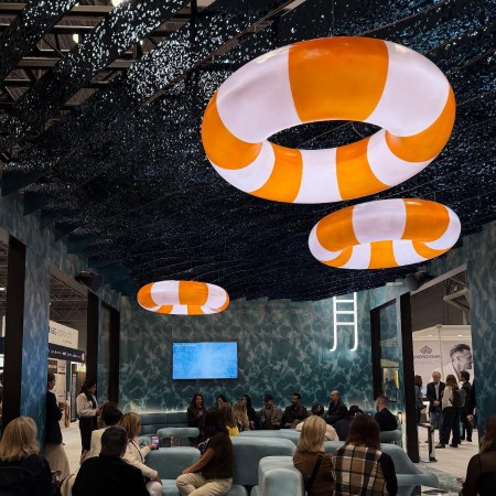 The show’s signature Designed Spaces invited attendees on a journey through four key areas that transformed the show floor into an interactive design gallery. The Splash Pad by DREAM Hotels and Nivek Remas was one of the most popular. In this lounge inspired by pool culture, visitors enjoyed drinks surrounded by mirrored planes, bold geometry, and sound. It was an imagined sunny locale indoors, the perfect antidote to the rain-soaked streets and gray skies outside.