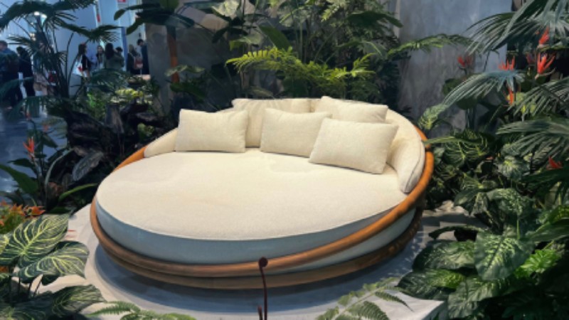 Indeed, the settings or collaborations were anything but basic. The new MORPHO collection was developed in partnership between Belgian electronic music festival Tomorrowland, Belgian brand Ethnicraft, and Antwerp-based architect Dieter Vander Velpen. The line, an ICFF award-winner in the outdoor category, includes furnishings with Art Nouveau flair updated for modern interiors. Pieces like the Solis daybed were surrounded by lush greenery, inviting visitors to an oasis on the show floor.
