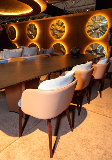 There was much to enjoy under Furniture Forecastâs mirrored ceiling. As a cinephile who goes to Spanish director Pedro Almodovarâs movies for the set-design color palettes as much as for the actors, I couldnât resist the playful Disk etagere, part of the CromĂĄtica collection by Almodovar and Sacha Lakic for French luxury furniture brand Roche Bobois, with large, stained-glass-inspired discs embellishing the shelving structure.
