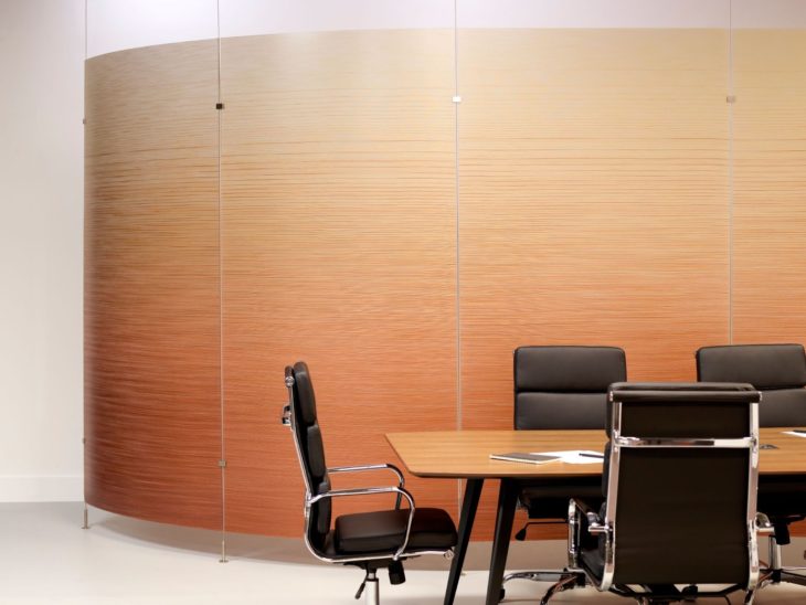 Rich woven patterns encapsulated in formable resin and glass elevate space division