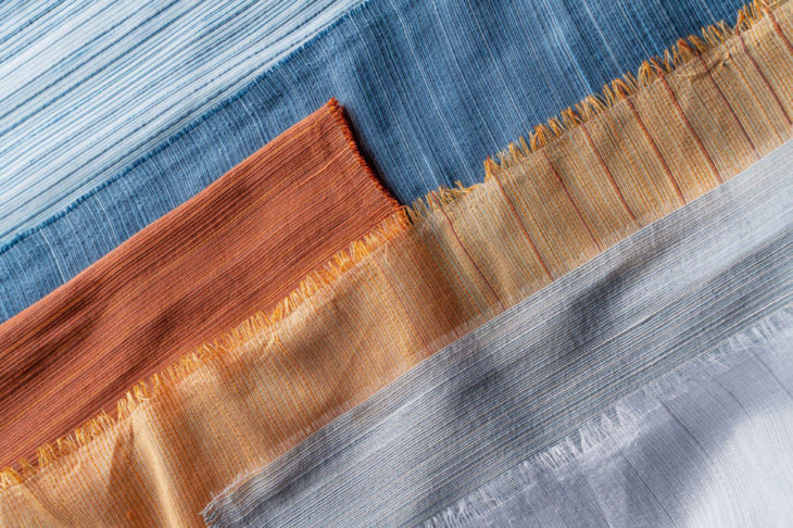 Thoughtfully developed over two years, Darby leveraged Swiss interior upholstery experts, Création Baumann, to bring the Horizon textile to life. Combining Création Baumann’s 100 years of textile mastery and weaving technology, the manufacturer engineered the brilliantly complex textile with varying yarn gauges and frequencies. Horizon begins with a heavy gauged, coarse yarn that gradually becomes finer as the machine moves up the textile. Adding more complexity to the already intricate process, finer yarns are interspersed throughout the textile to achieve irregularity and warmth. Dyed in three rich gradient colorways—Day (dark to light blue), Beam (orange to gold), and Tempest (dark to light gray)—Horizon highlights Création Baumann and 3form’s shared passions for color, light, and translucency.