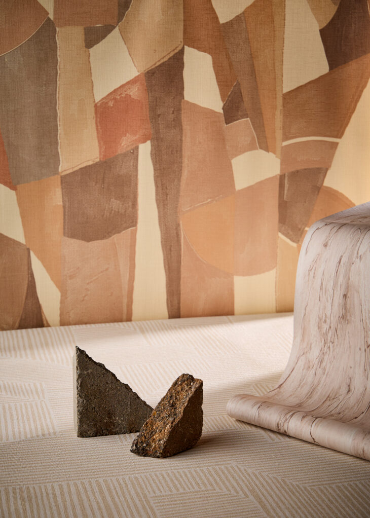 Momentum’s Circon™ Carbon Neutral Bio-Sourced wallcovering collection has expanded to include three new patterns, including Samba — a playful, painterly collage of varying geometric shapes layered together in an earth-inspired palette and exuding a rhythmic energy.