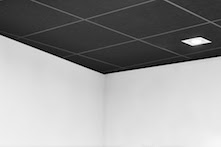 While bright, white, light-reflective ceilings were specified for the meeting rooms, a different aesthetic was required for the acoustic demonstration studio. Here, Cinema Black panels were used to create a dramatic effect. These low-reflection, black surfaces and high-performing sound-absorptive ceiling panels cost-effectively improve both the studio’s visual and acoustic experience.