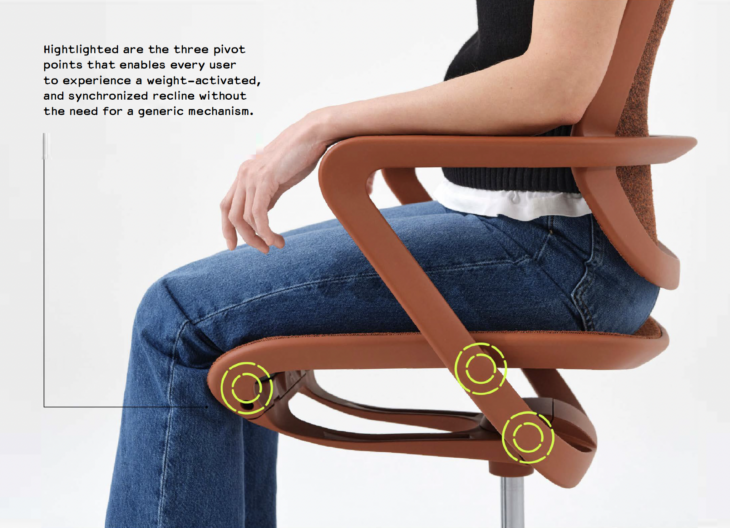 Pivot-tec is not just integrated into the chair’s frame, but it is the chair’s frame.