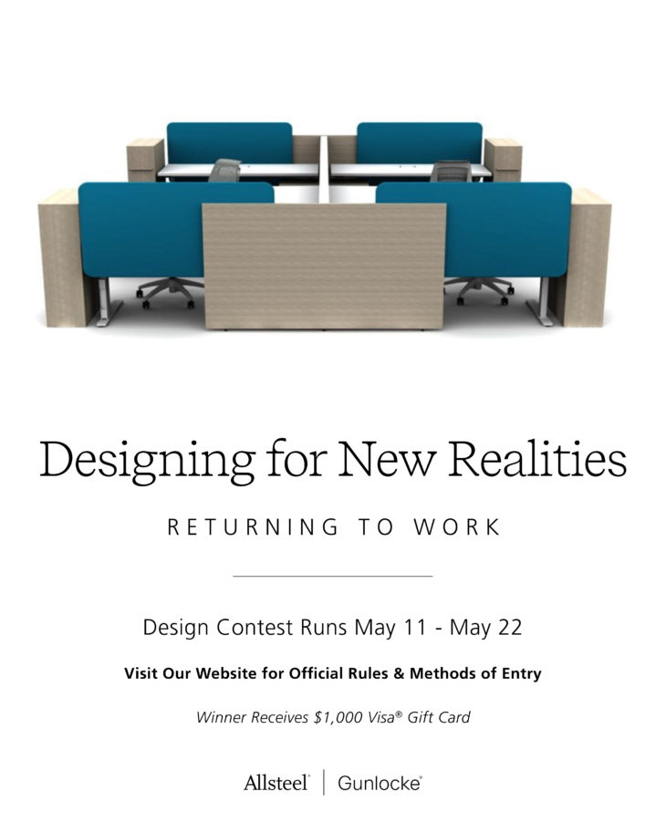 Allsteel Inc. and The Gunlocke Company LLC, leading office furniture manufacturers and sister brands under HNI Corporation, are excited to announce the launch of a new contest – Designing for New Realities: Returning to Work. During this unprecedented time of the COVID-19 pandemic, we find ourselves “designing for new realities” within the workplace. Together with clients, design partners and the dealer community, it is important that we are continually learning and sharing ideas and concepts that will allow us ALL to be successful in this new reality.