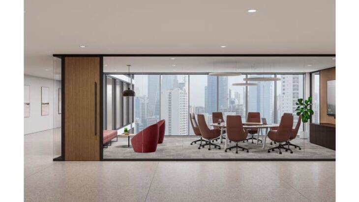 This balance is expressed through a refined architectural language that feels both light and intentional. Its slim, consistent trim profile at floors, ceilings, and transitions creates a seamless, elegant aesthetic, while a curated range of design options —from frameless glass to coordinated wood doors—supports cohesion and expressive architectural language. The universal trim profile preserves sightlines and architectural intent while also supporting efficient installation, resulting in a streamlined and seamless execution across the floorplate.