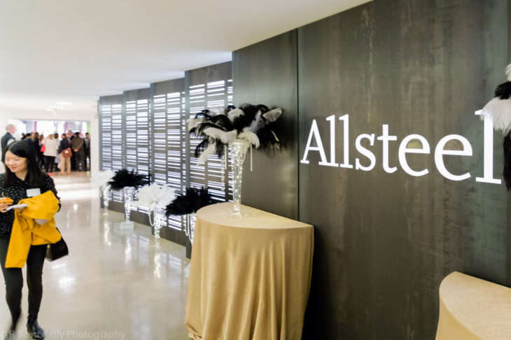 Allsteel, Inc. and Office Environments International, Inc., an Allsteel dealer partner in Arlington, VA, co-hosted the 11th Annual Posh Pumpkin event on October 19 at Allsteel’s Washington DC showroom. More than 294 guests, including architects, designers, project managers, partners and clients, attended the Great Gatsby–themed Halloween party—a festive competition where firms submit elaborately carved pumpkins and a panel of guest judges decides which are the most creative entries. This year, teams from 14 leading architecture and design firms showcased their wildly imaginative creations, with first place going to HKS Architects for “Hocus Pocus,” the coveted prize being an Amazon Echo Show for each team member. In second and third place were WDG Architecture for “The Walking Gourd” and Samaha Associates for “Steam Punk Dragon,” whose team members received Bluetooth Headphones and Mini Instant Polaroid Cameras, respectively.