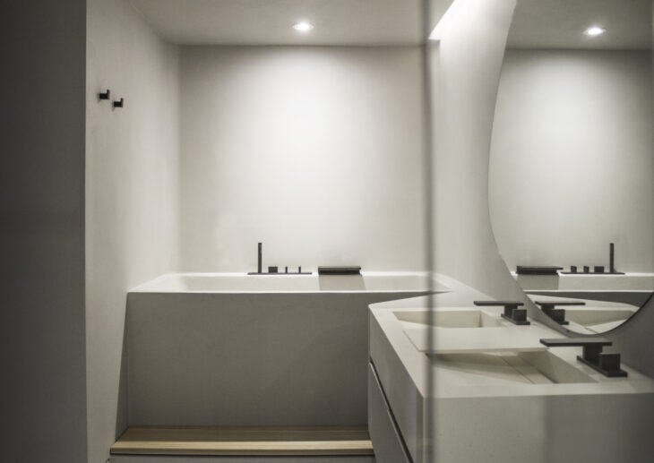 Foxbar Residence designed by Nonument – A one-of-a-kind home in Toronto, Ontario featuring the Aboutwater by Boffi and Fantini’s AF/ 21 and AK/25 collections. The goal was to treat the fixtures as artistic elements within a tranquil environment. Sourced from Italinteriors. Photography courtesy: Dominique Cheng