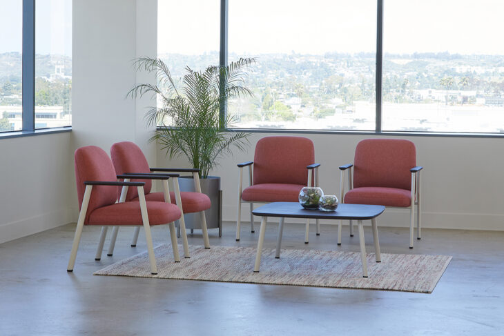 All models are engineered for durability, with a weight capacity of 500 lbs. per seat and 1,000 lbs. for bariatric models. Arm caps are offered in beech wood, black urethane, or Corian®, and all occasional and connecting table surfaces are available in a wide range of veneer, laminate, Fenix® and Corian selections.