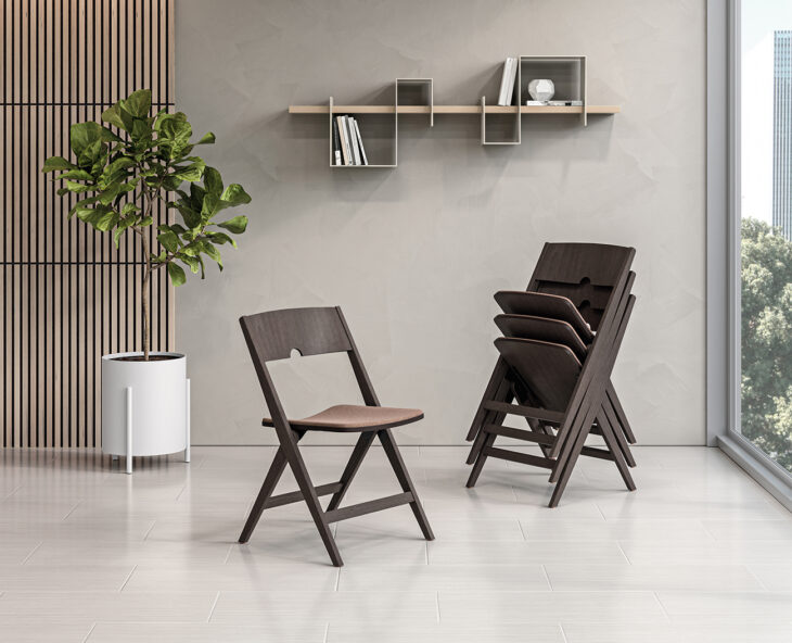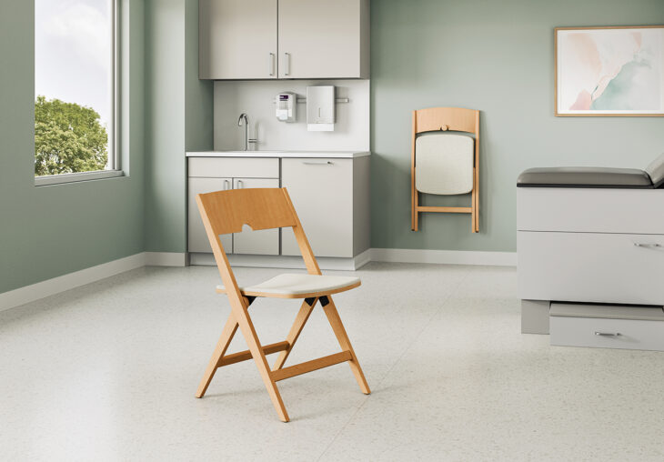 Designed by David Ritch and Mark Saffell of 5D Studio, Stash marks a first for Arcadia. While folding chairs had not previously been a focus, market research revealed a strong demand for upscale, space-efficient seating—particularly in healthcare consultation and exam rooms. “Although not previously in our sights, once we saw the study and concept, the decision to move forward came naturally,” says Helen Kim, Arcadia’s Vice President of Marketing. “The chair’s visual appeal stands on its own, but its compact storage capability makes it a truly high-performance, space-conscious solution.”
