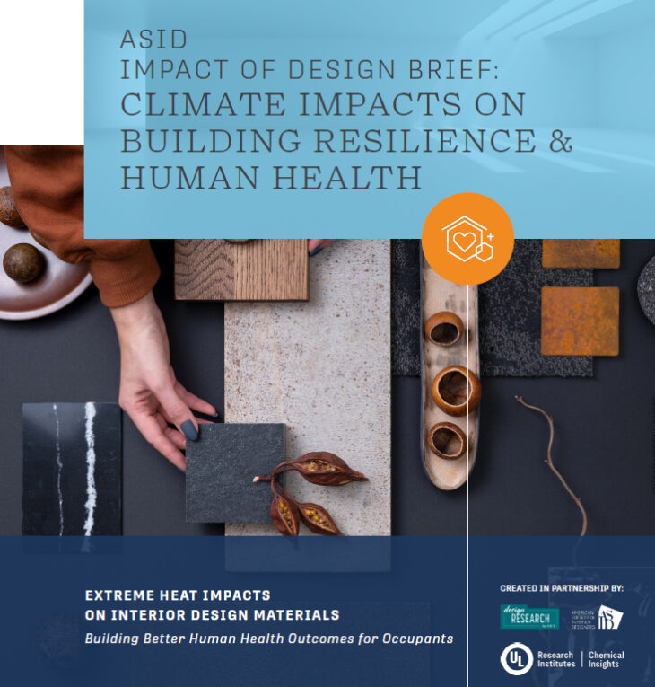 The American Society of Interior Designers (ASID) remains dedicated to prioritizing and promoting sustainable approaches in the design industry. ASID is proud to collaborate with the Chemical Insights Research Institute (CIRI) to explore the health and safety impacts of environmental factors like extreme heat and wildfires on the built environment. The report, “Impact of Design Brief: Climate Impacts on Building Resilience & Human Health,” provides interior designers and industry leaders with a resource to help them when working on projects in areas of greater risk from extreme heat.