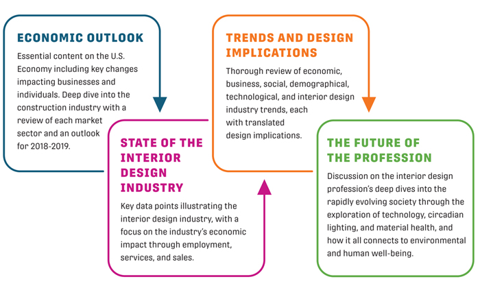 - State of the Industry – as the U.S. economy is now at or near full employment, the interior design industry is continuing growth in economic contribution, but at a slower pace