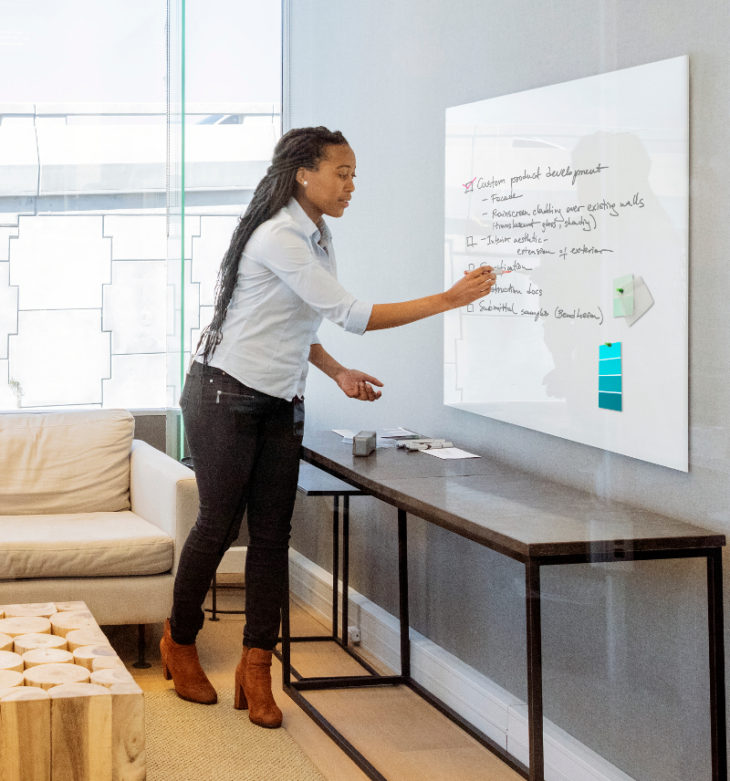 QuicKISS glass boards are designed and manufactured by Bendheim in the USA. They are available in four quick-ship sizes: 24” x 36”, 36” x 48”, 48” x 72”, and 48” x 96”. Custom sizes, colors, and imprints can also be specified (longer lead times apply). For more information on Bendheim’s dry-erase glass boards, please visit https://bendheim.com/glass-dry-erase-boards.