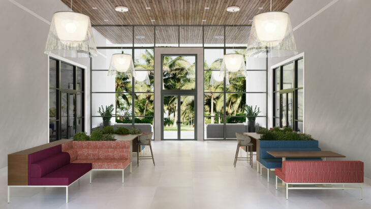 Fairway Holdings, a leading contract furniture manufacturer in the US, has launched a new cornerstone collection. Century offers the freedom to design with style, comfort and productivity in mind. The collection includes seating with a modern metal frame and fully upholstered seats that blend seamlessly into any environment. Additionally, planters, soft seating, storage, and work surfaces can be incorporated to heighten flexibility and add a touch of biophilic design to any space.