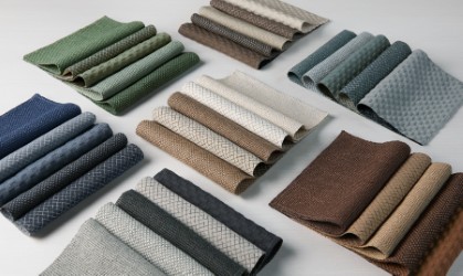 -Knot: This elegant solid showcases a modern aesthetic with a palette of 17 fashion-inspired colors. Crafted from 83% recycled polyester, Knot offers a luxurious hand feel and a subtle sheen, making it both sustainable and stylish. Price: $47/yard.