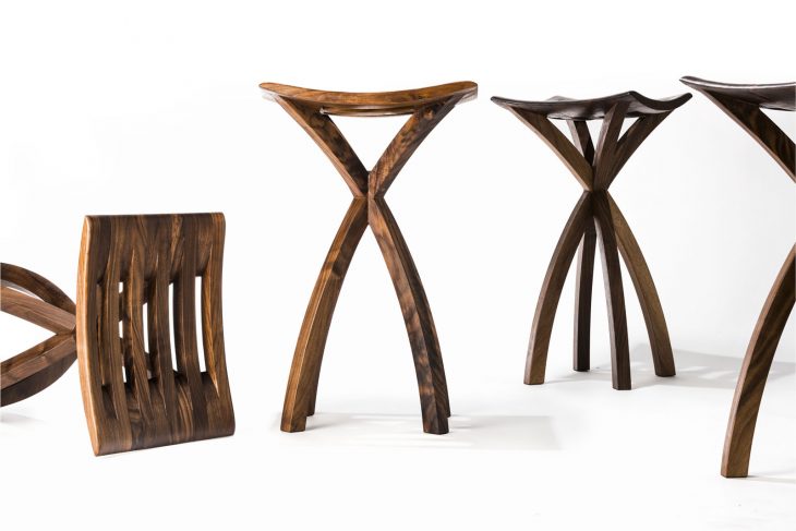 All of the pieces are available in white ash, natural oak, walnut, and blackened oak. The furniture is suitable for both residential and commercial interiors. To ensure the best quality and grain patterns, every piece of wood is chosen with care. All components are milled, carved, assembled, and finished by hand to last a lifetime. With no reinforcing frames, the functionality of each piece relies solely on the integrity of the design and construction.