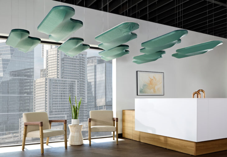 With a First-of-Its-Kind Shape and a New, Recycled PET Core, the Acoustic Cloud Shows Off Xorel’s Dimension From Above