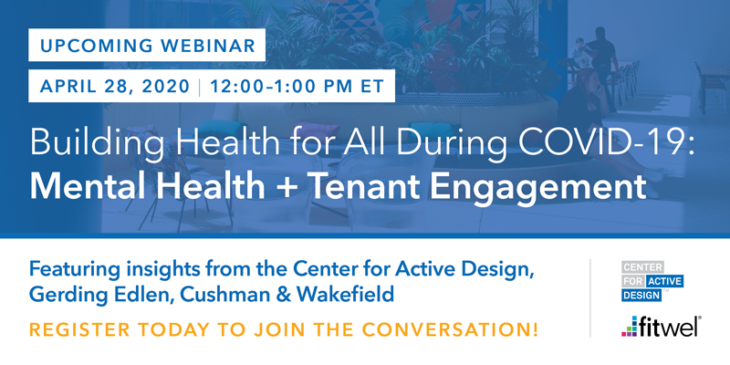 To better support our Fitwel community, we are hosting a series of webinars that tackle pressing questions and share valuable perspectives on how the real estate industry can leverage evidence-based strategies to strengthen buildings and empower people—especially in times of crisis. On April 28, the first webinar in this series will convene representatives from CfAD, Cushman & Wakefield, and Gerdling Edland to address two pressing questions emerging around COVID-19: 1) How can we optimize our socially distanced, remote work and home environments to promote mental health? And 2) How can management effectively communicate and safely engage with tenants to build confidence in this moment of uncertainty?