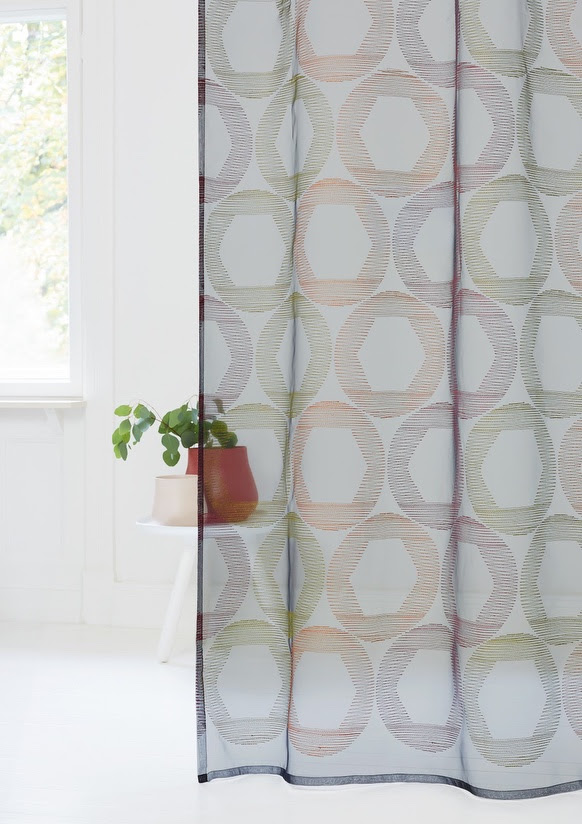 Celeste is a transparent curtain fabric from storied textile manufacturer Création Baumann. Embroidered circles present a consistent rhythm of shapes in a variety of colors. This charming fabric can be used for a wide variety of applications including residential, commercial, and hospitality. Available in 3 colorways, Celeste is made from 100% flame retardant (Trevira CS) polyester.