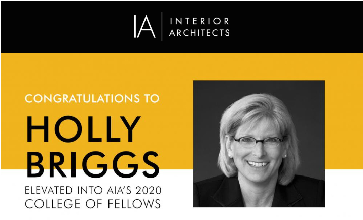 From all of us at IA, please join us in congratulating Holly Briggs, FAIA, on this lifetime achievement! The induction ceremony will take place at the AIA Conference on Architecture in Los Angeles, CA, May 15th, 2020.