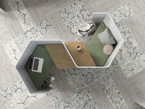With bees as inspiration, we created the Pathmakers carpet plank collection. The new textural styles, Gentle Ground and Buzzing Trails, feature subtle visuals evoking fields criss-crossed by paths of pollinating bees.