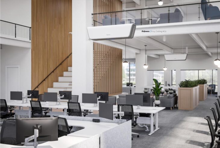 Additionally, the CDC found more than 300 substances in the workplace that can cause or worsen asthma, making workplace air quality a real concern for asthmatic and vulnerable employees. To see the quality of a workplace’s air, Fellowes offers comprehensive assessments, including a complimentary IAQ assessment. Once the assessment is complete, Fellowes provides customers with IAQ data along with recommendations for possible remediation improvements including its Array system.