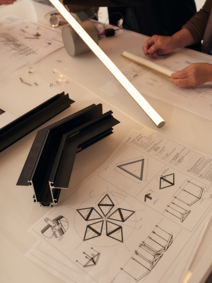As a thoughtful partner in the bespoke design process, Flos, ensures everything from engineering to installation and beyond are as seamless as possible across all projects. Custom crates are built on-site for delivery (mostly or fully assembled in some cases), and the brand offers Bushwick-based, fully accessible technicians to help clients past the point of installation.
