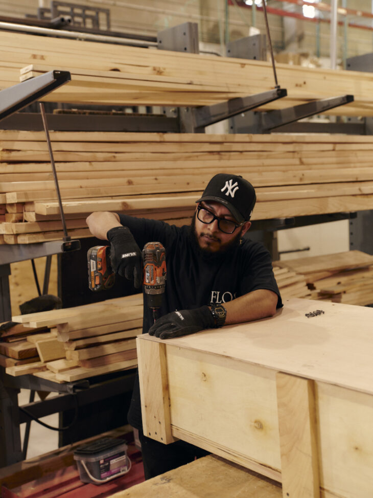 This new facility has also allowed for major upgrades across Flos Bespoke, one of the company’s four divisions, with an emphasis on localizing operations and material sourcing. Bushwick is prioritizing US-made, locally-sourced materials and partnerships to support project needs including metal fabricators, an on-site paint shop, and on-site polish and custom finishing capabilities.