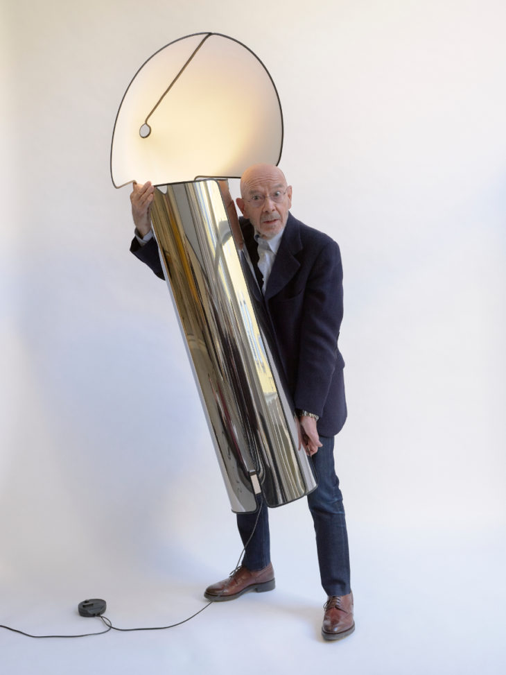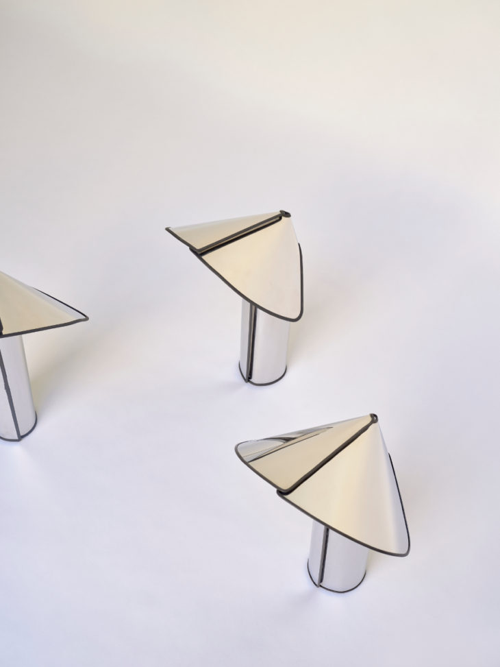 Flos is launching a re-edition of Chiara – originally designed by Mario Bellini for Flos in 1969 – an iconic design from a simple sheet of polished stainless steel that has been cut and rolled into a cylinder. The origami-like structure hides a lighting source, updated to LED and placed on the floor. The light it provides is reflected and diffused by a large “hat”, which resembles a nun’s wimple and veil.