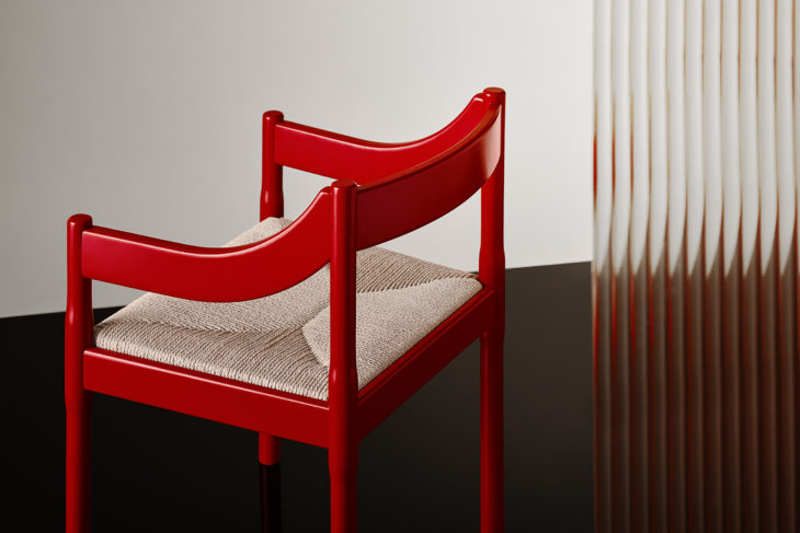 The armchair honors Vico Magistretti who designed the original red Carimate in 1959 for the golf club Carimate in Italy. The details make this anniversary edition by Fritz Hansen truly special.