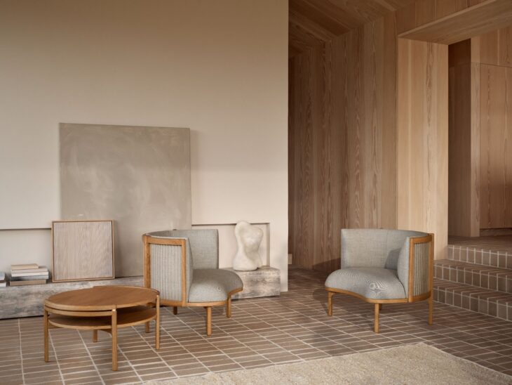 CARL HANSEN & SON IS EXPANDING THE SIDEWAYS SERIES BY DANISH DESIGNER RIKKE FROST WITH A LOUNGE CHAIR AND COFFEE TABLE THAT STAND OUT FOR THEIR ORGANIC SHAPES AND NATURAL MATERIALS.