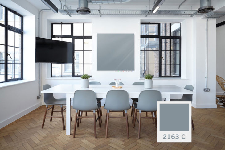 An appropriate variety and balance in the colors in the workspace environment can improve both mood and performance, which is why offering a variety of both standard and custom color matched glassboards has become a highly requested item. Ghent’s standard color offering has been tested to have a balance of current color trends and readability. If a specific color match is requested, Ghent’s paint mix process makes it possible to match to a PMS or popular wall paint color quickly and accurately.
