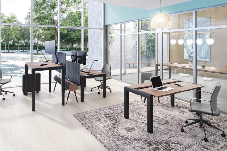 Manufactured at HAT Collective’s Danish design and manufacturing facility, the height-adjustable, fully customizable collection promotes an active work environment with an unmistakable European flare. The Elle Collection allows people to work their way — whether in the office or at home, sitting or standing, together or at a distance. Each product within the collection is highly customizable in scale and materiality. The Elle Collection debuted at NeoCon 2021 and includes: