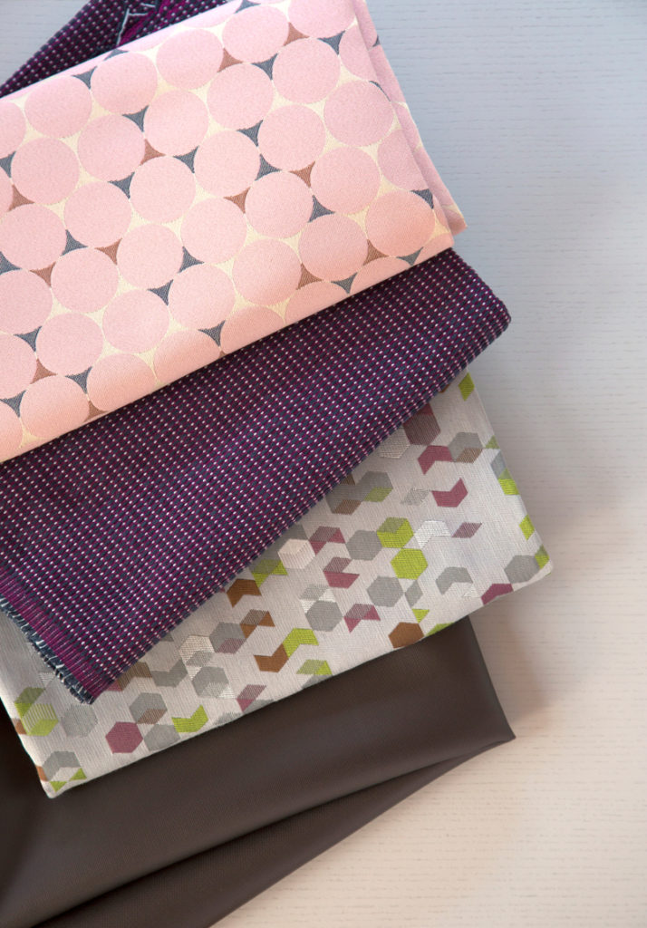 The four designs include: Roundabout, Dashing, Bling, and Airmail, with each available in 6 â 11 colorways featuring quirky color combinations for the more diverse interior environment. Airmailâs signature, repetitive patterning echoes the shapes of multiple envelopes when layered over each other on a busy desk; Blingâs simple inspiration from the glimmer and sparkle of jewelry brings a metallic element to the collection; Dashing provides a rhythmic pattern of consistent dashes, visualized from ladder rungs and road lines; and Roundaboutâs circular shapes mimic the motion and energy of its namesake – traffic circles.
