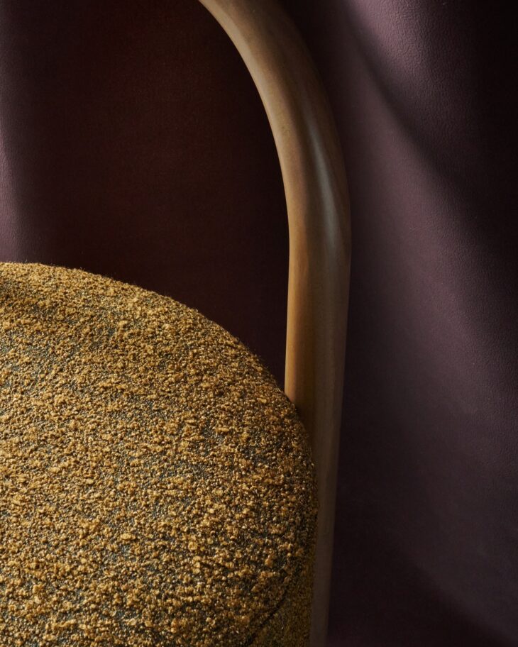 An intricate topography made from thousands of irregular loops, Blended Boucle captures light and releases it in delicate, ever-changing ways. Its unexpected luminous metallic threads shimmer across textured landscapes in 11 colorways (named for crafted cocktails), creating upholstery that is as tactile as it is visualâa crafted dialogue between material and emotion that reveals new secrets with every glance as it engages both the hand and the eye.