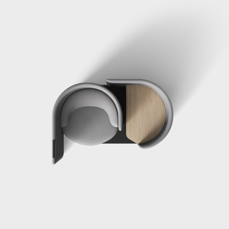 Developed by London-based design studio Industrial Facility in response to the Annual Briefing based on the concept of “defining,” Tulipan challenges conventional typologies like booths or meeting pods. Instead, it proposes a new kind of spatial element; neither room nor furniture, but something meaningful in between. Tulipan offers a moment of separation without the feeling of full disconnection. A small table and a comfortable swivel seat are enclosed in a compact shell, no larger than a typical chair and table. Half of the enclosure rotates with the seat, making entry intuitive and seamless. There is no door; the transition from shared space to semi-private retreat is smooth and informal, eliminating the rigidity often associated with closed spaces.